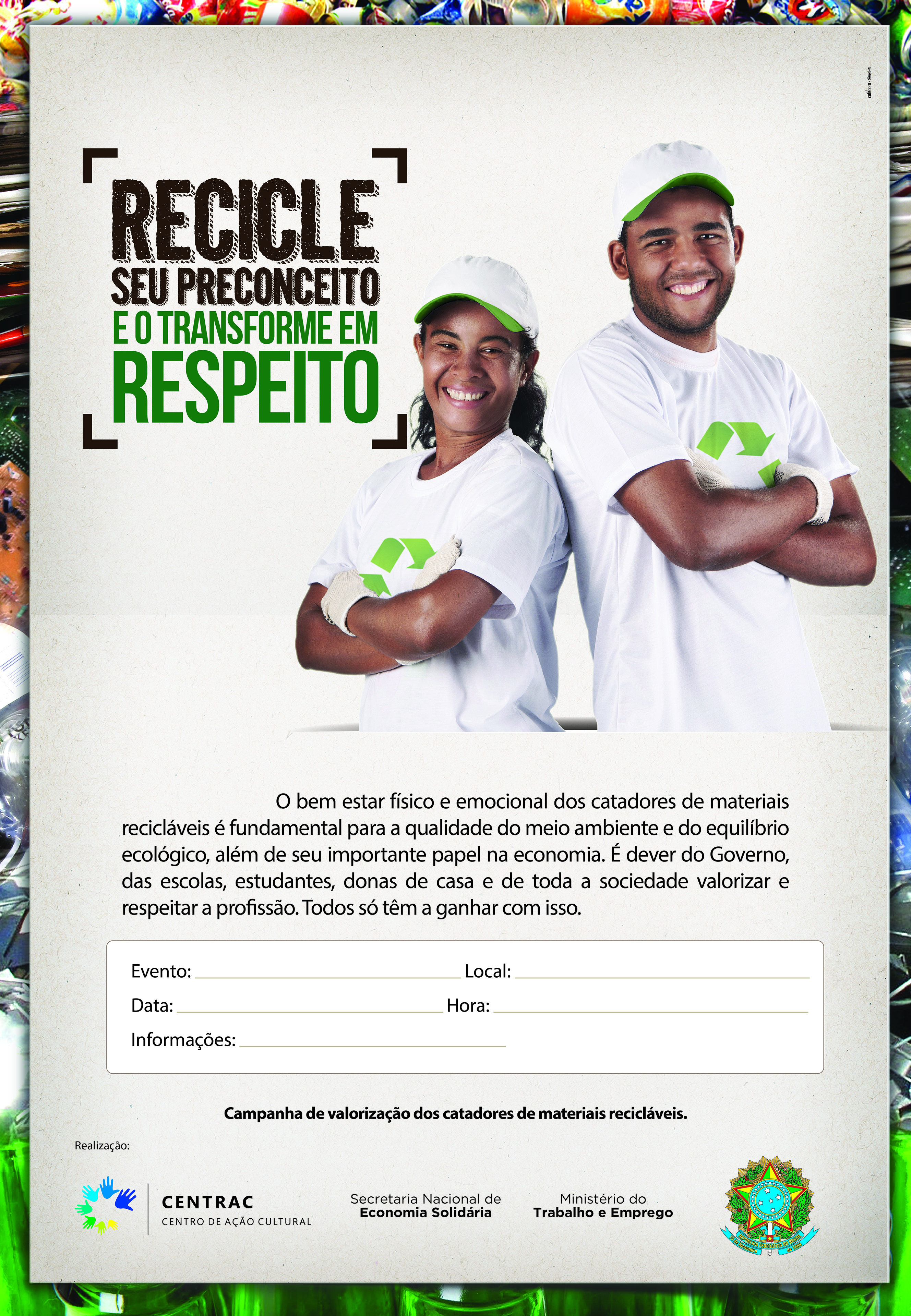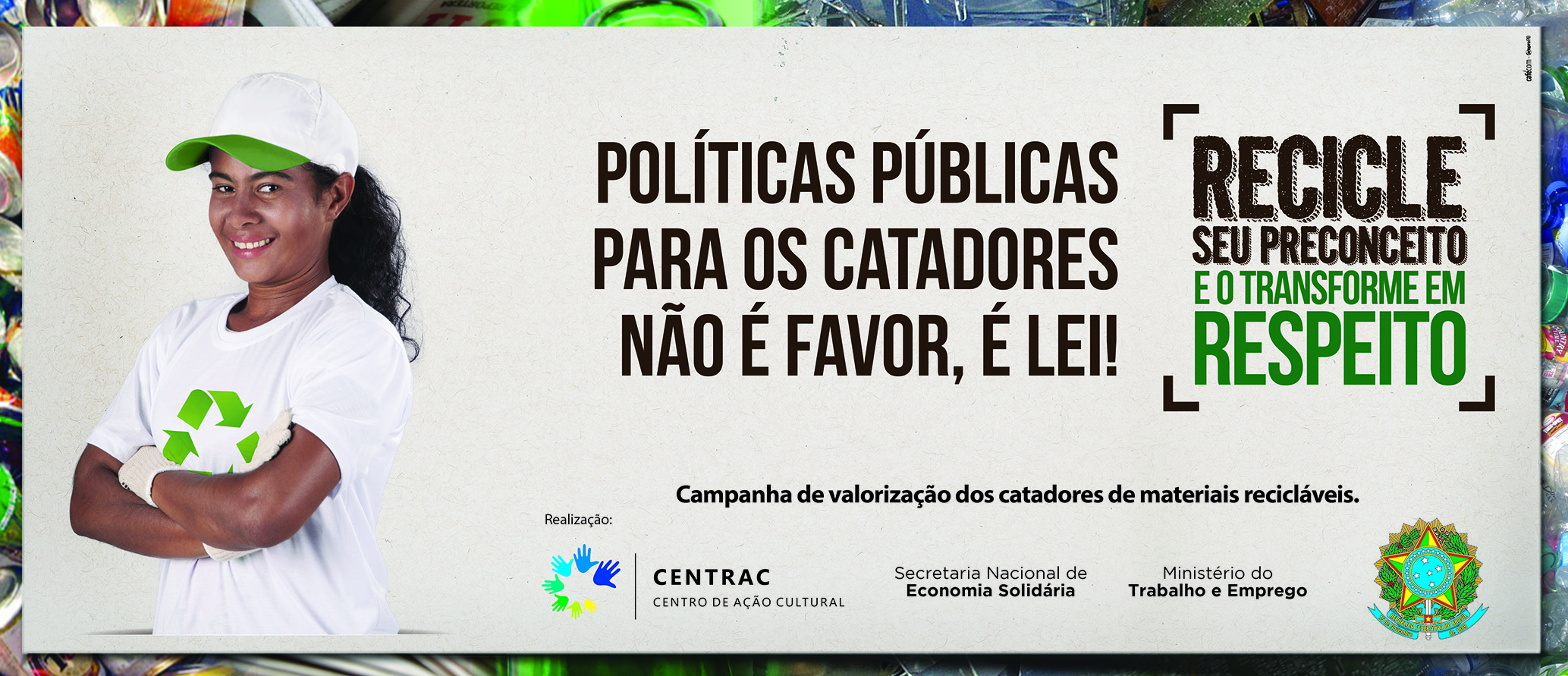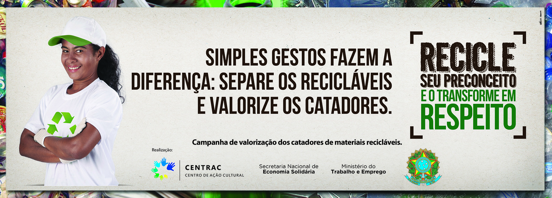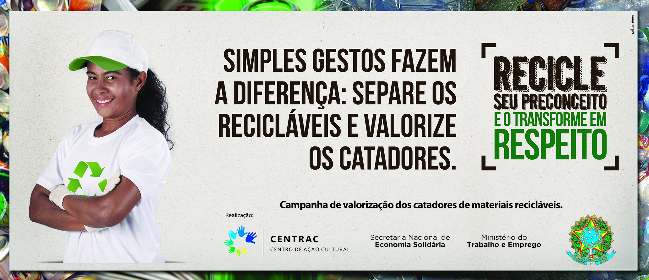 As iniciativas visando o enfrentamento das dificuldades têm decorrido basicamente do esforço dos/as catadores/as, como, por exemplo, o reconhecimento pelo Código Brasileiro de Ocupações, no ano de 2002, mas, os efeitos ainda são bem tímidos. Apesar de estarem aquém do potencial que comportam, os números alcançados pela indústria de comercialização e reciclagem de resíduos no Brasil revelam que esta não precisa se dar de forma tão injusta para os/as catadores/as, tornando patente a necessidade de iniciativas que combinem melhores condições de trabalho aos/as catadores/as com a gestão dos resíduos produzidos.A Campanha visa contribuir com a difusão da importância do trabalho que os/as catadores realizam, tanto para a preservação do meio ambiente, quanto para a manutenção de milhares de famílias.A mudança de hábitos para a valorização dos catadores/as passa por uma mudança cultural, que estabelece a responsabilidade compartilhada dos gestores/as públicos, consumidores e produtores pela geração e destinação dos resíduos, como estabelece a Política Nacional de Resíduos Sólidos (PNRS), Lei 12.305/2010.