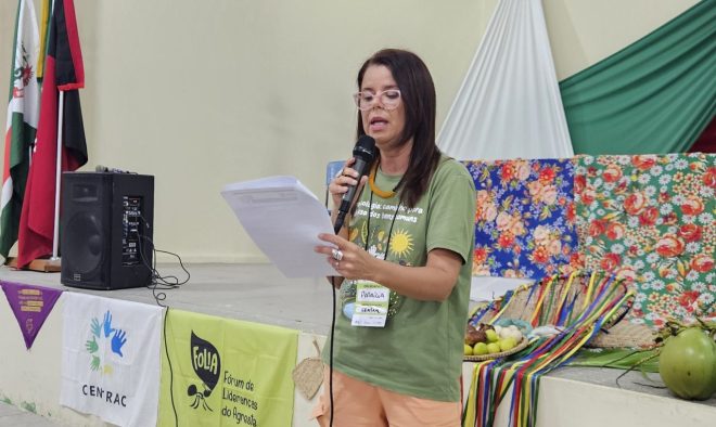 Em sua fala de boas-vindas, Socorro Oliveira destacou a importância do momento: “Em nome do Fórum de Lideranças do Agreste, quero ressaltar que este é um momento histórico, construído em parceria com diversas instituições, para dialogar sobre políticas públicas que melhorem a vida das agricultoras e dos agricultores. Assim como tivemos a Conferência de Segurança Alimentar, esta também reforça a importância da comida de verdade, livre de transgênicos e agrotóxicos.”