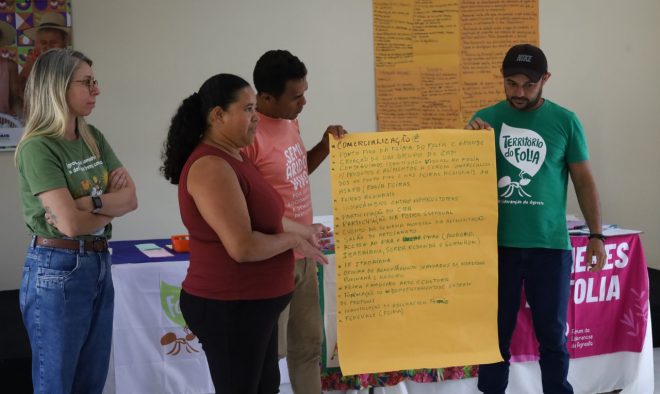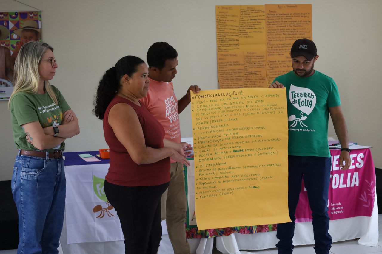 A partir das realidades dos municípios, o grupo avaliou os avanços e desafios de 2025 relacionados à organização comunitária, ao acesso às políticas públicas para a agricultura familiar e à atuação do FOLIA. As reflexões se organizaram em torno dos temas: sementes, criação animal e produção de forragem; água e saneamento; Fundo Rotativo Solidário e comercialização; além de mulheres e juventudes.
