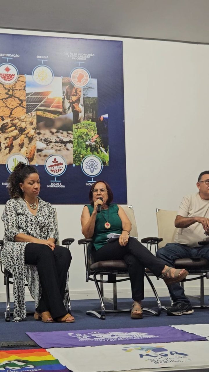 No período da tarde, o debate seguiu com o painel “Iniciativas em andamento”, reunindo representantes de organizações da sociedade civil, instituições de pesquisa e cooperação internacional. Entre as participantes estavam Madalena Medeiros, do CENTRAC e da ASA Paraíba; Nívea Felisberto e Lucas Salla, da Embrapa – Programa Inova Social; e Juliana Peixoto, Centro Sabiá, com mediação de José Camelo, da AS-PTA.